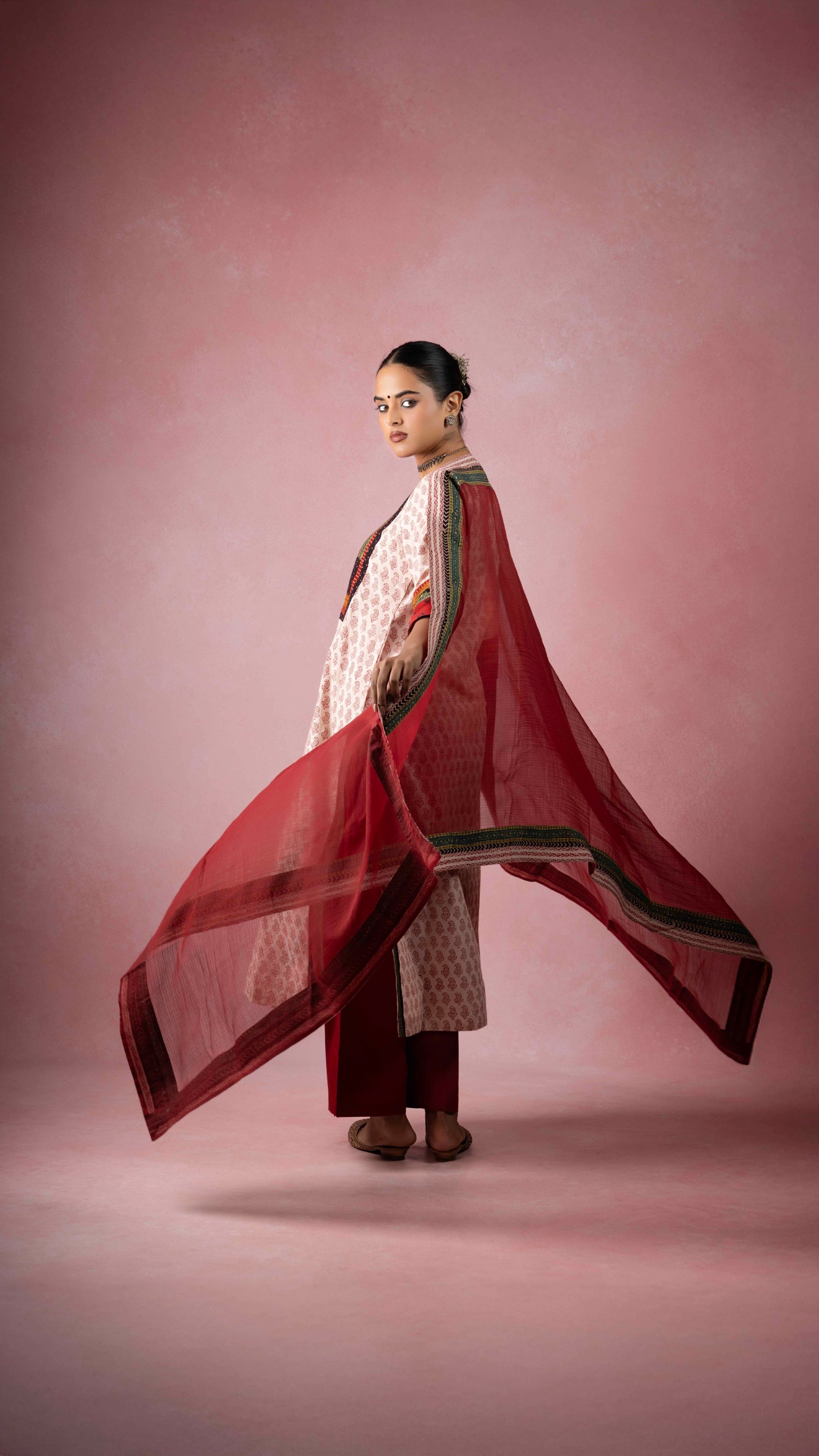 | Handcrafted With | ARTISAN STITCHED AJRAKH & BAGH TRIMS IN DISTINCT PRINTS |
