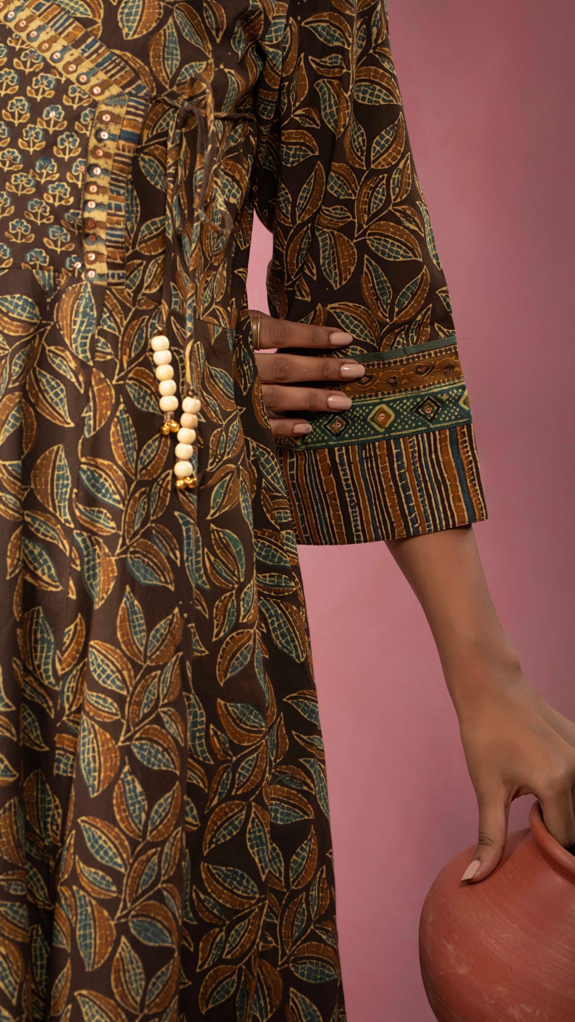 | Handcrafted With | ARTISAN STITCHED AJRAKH TRIMS IN DISTINCT PRINTS |