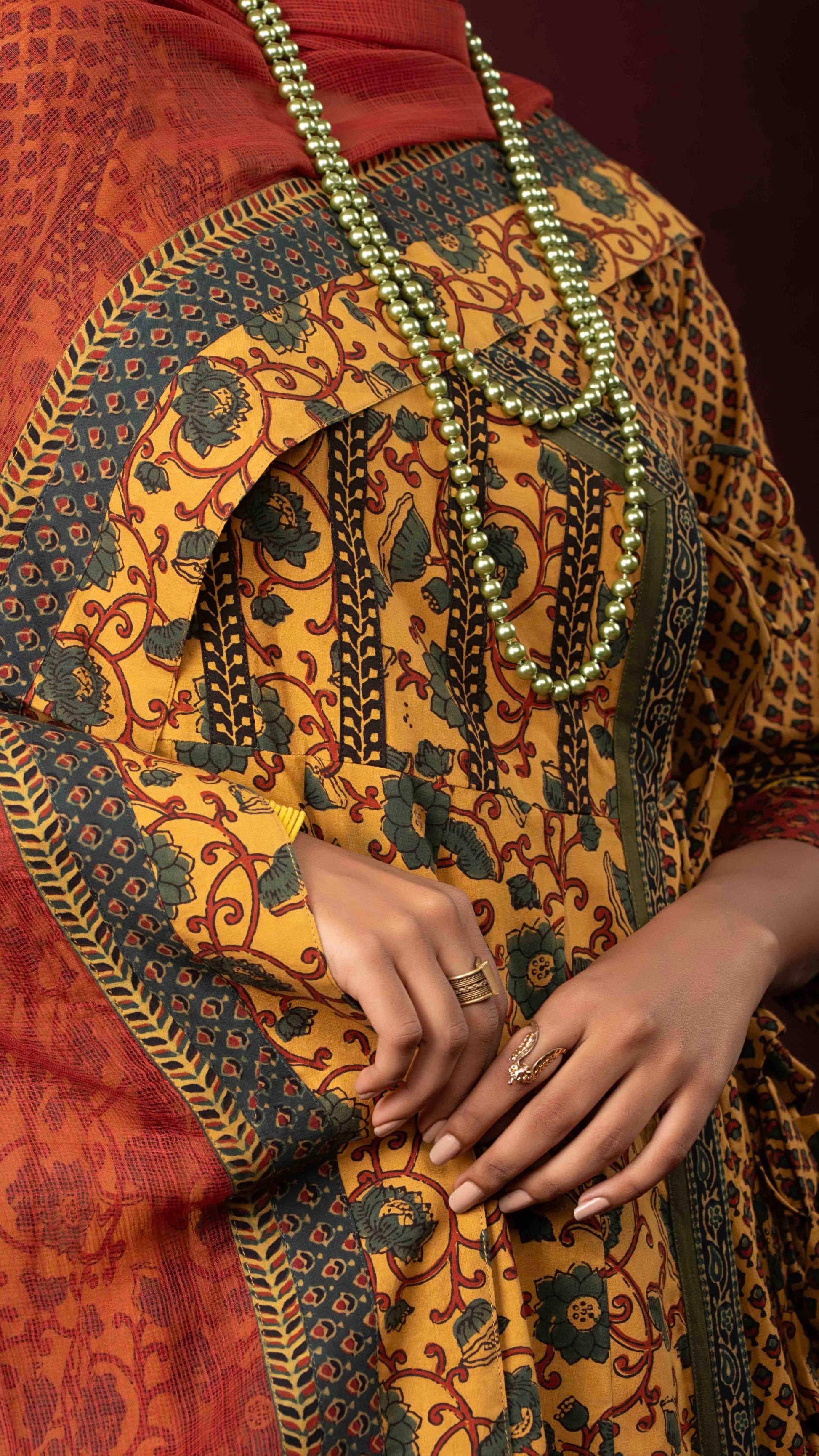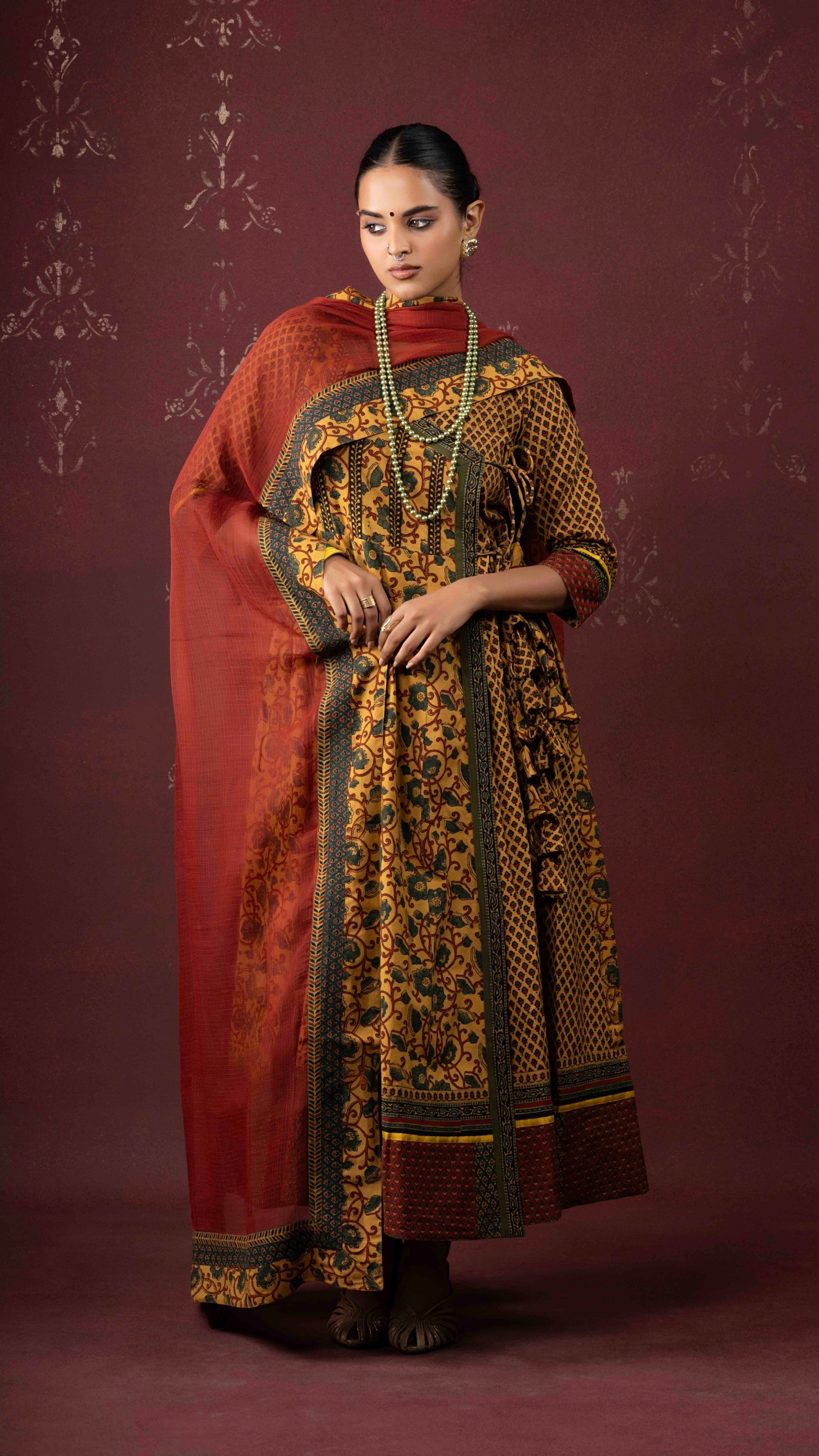 | Handcrafted With | ARTISAN STITCHED AJRAKH TRIMS IN DISTINCT PRINTS |