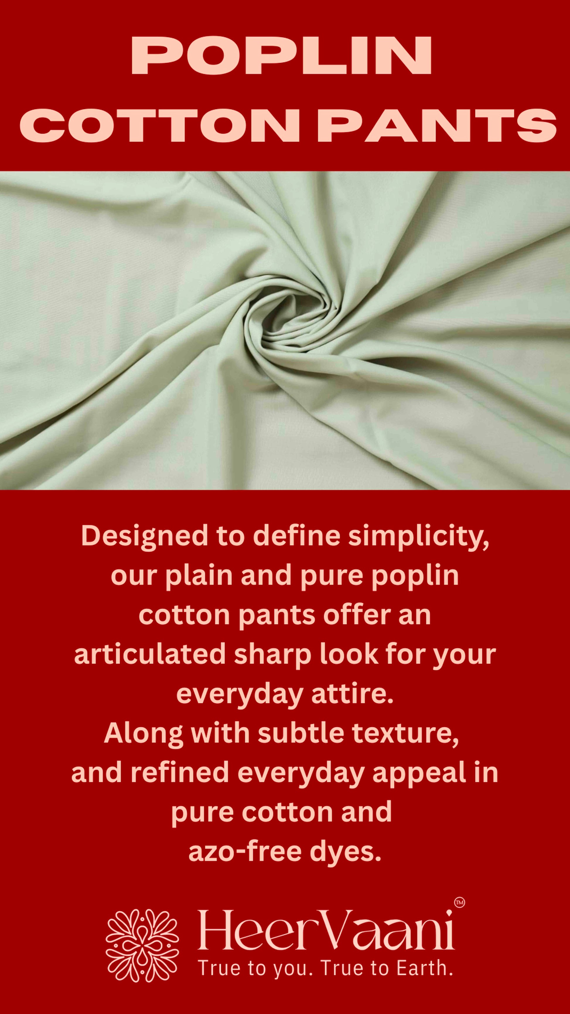 Light, breathable, and versatile, HeerVaani poplin cotton pants are quiet essentials that move with you through every season and every story.