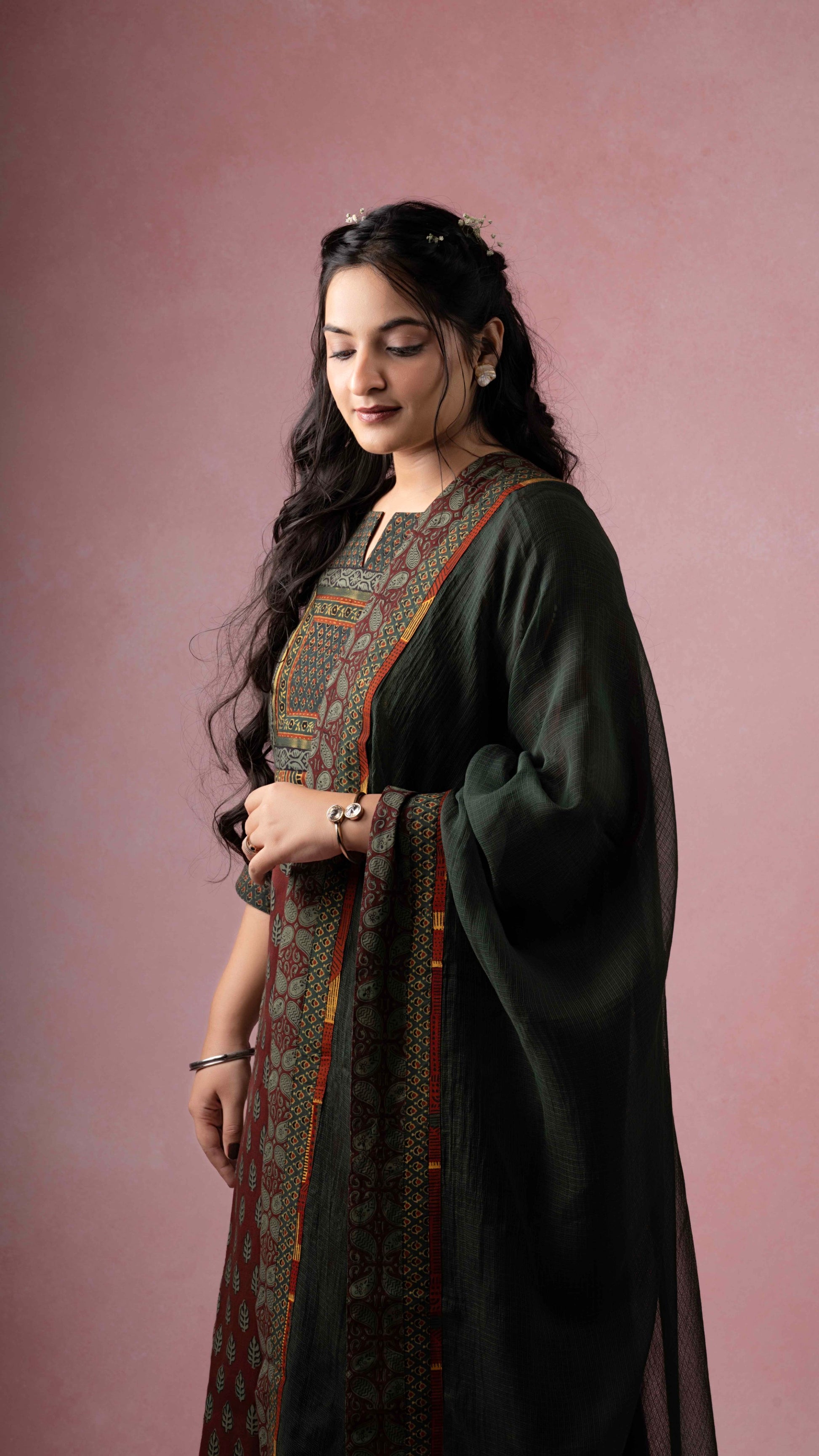| Handcrafted With | ARTISAN STITCHED AJRAKH & BAGH TRIMS IN DISTINCT PRINTS |